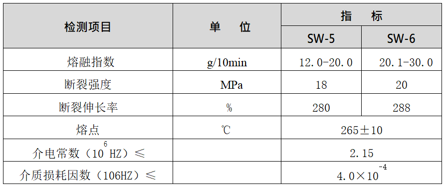 3、SW-3,SW-4 FEP:主要用于挤出加工的通用型树脂、电线绝缘层、管材、薄膜以及各种制作。